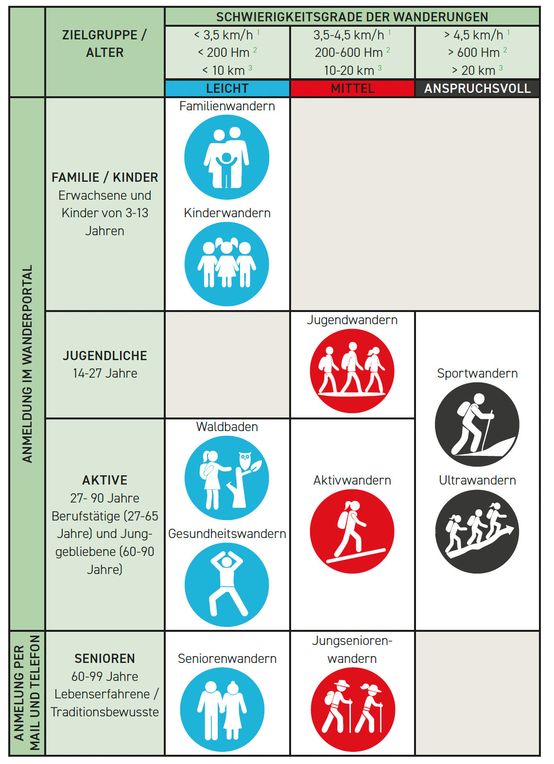 der Wanderungen mit den Zielgruppen zu Wandertypen kombiniert.
